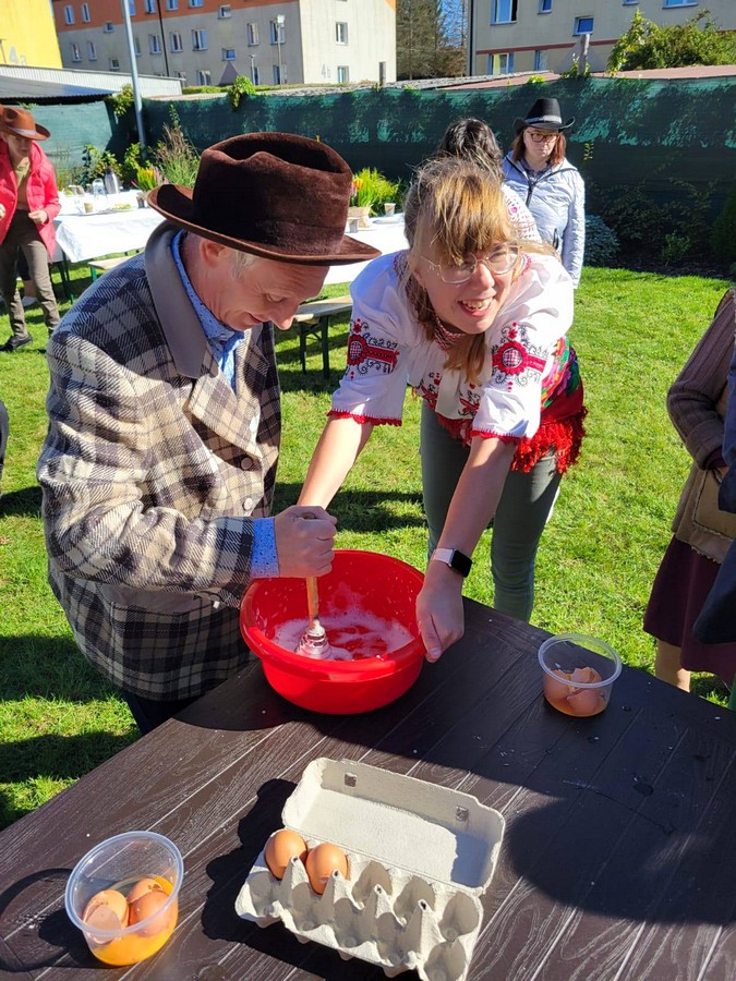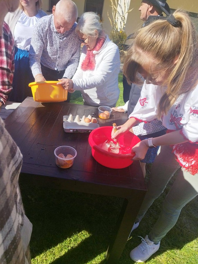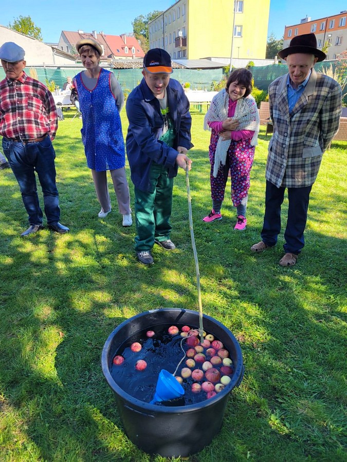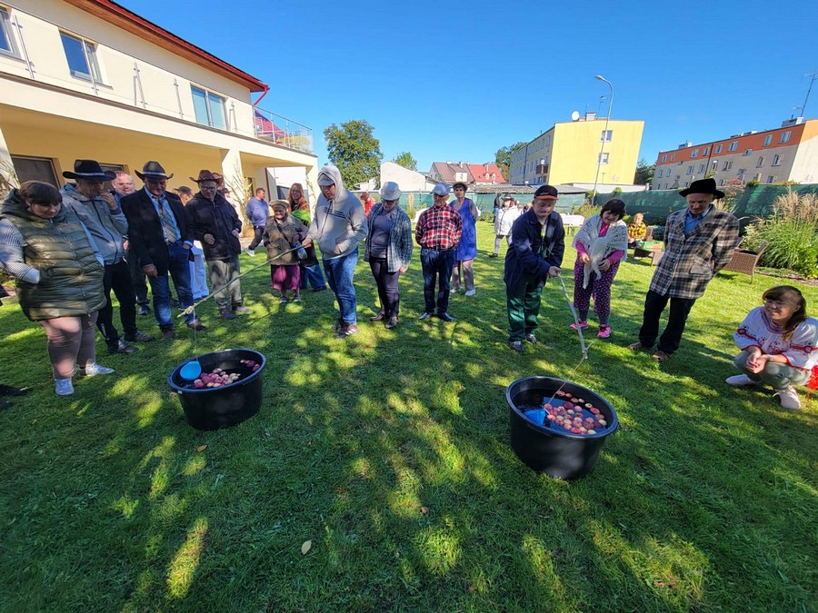 Podczas spotkania czekały na nas różne konkurencje i zadania – m.in. łowienie jabłek, oddzielanie żółtka od białka, ubijanie białek, obieranie oraz tarcie ziemniaków czy wbijanie gwoździ. Emocji i śmiechu nie brakowało!
