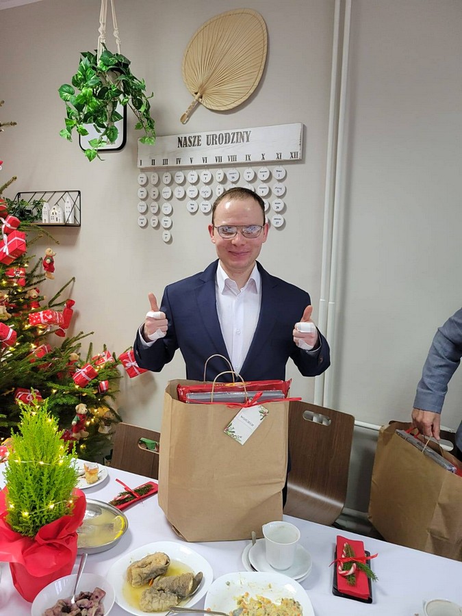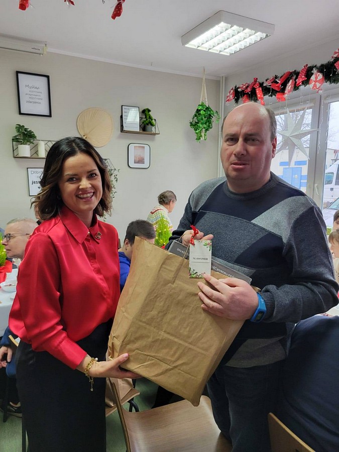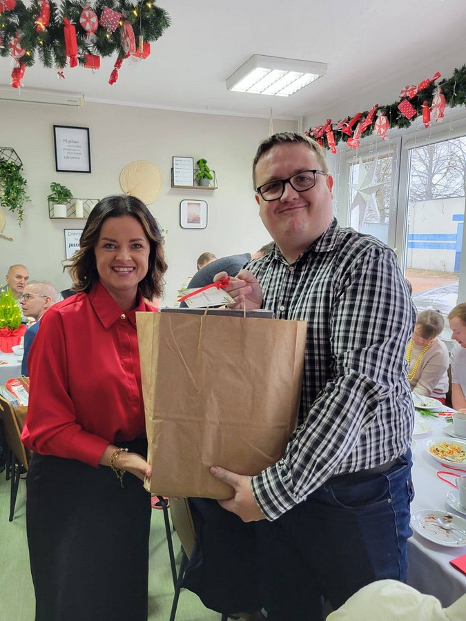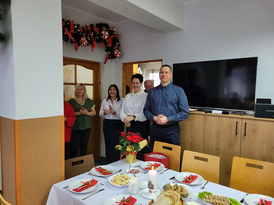 Jak co roku o tej porze spotkaliśmy się wszyscy przy wigilijnym stole. Oprócz nas – uczestników i pracowników Środowiskowego Domu Samopomocy w Czersku – w uroczystości udział wzięli zaproszeni goście: Wiceburmistrz Czerska Pani Małgorzata Wojciechowska, ksiądz Piotr Wietrzykowski oraz przedstawiciele Caritas Parafialnej w Czersku.