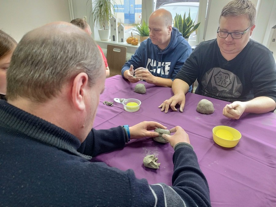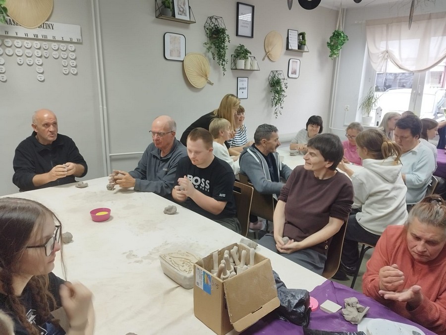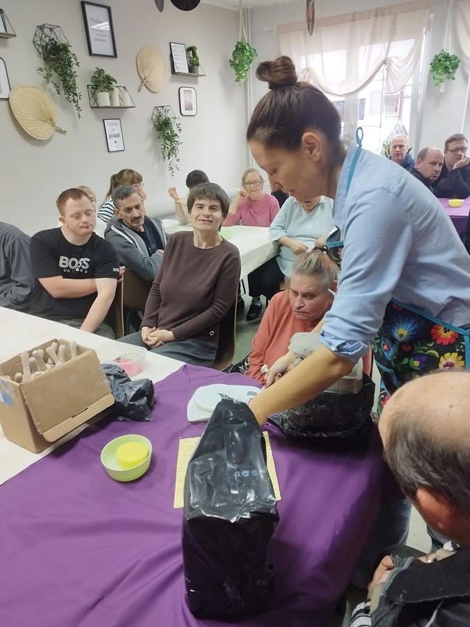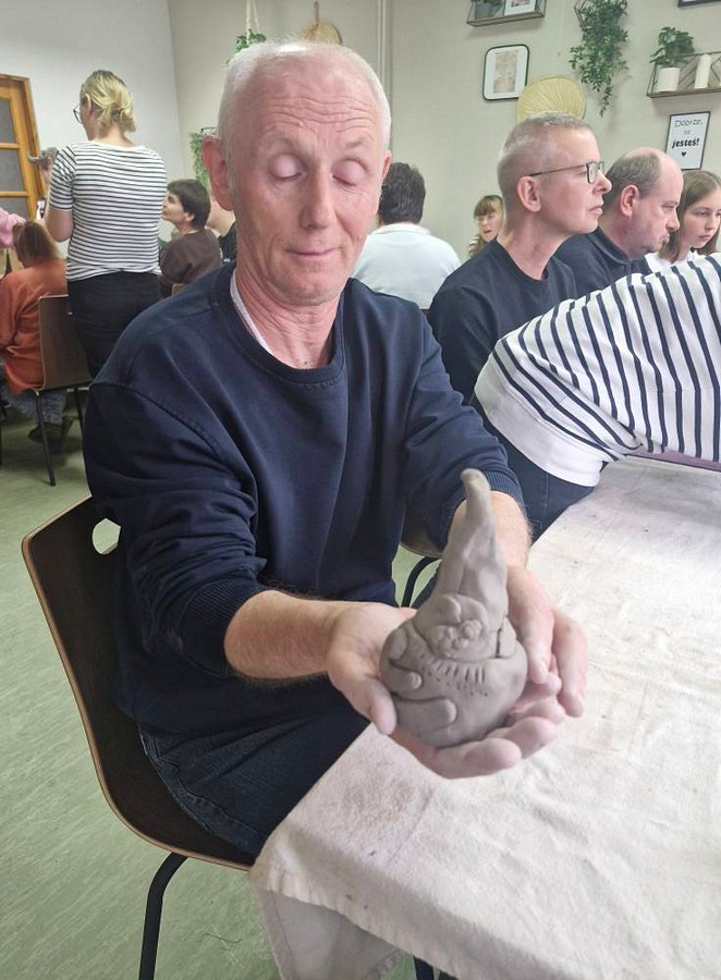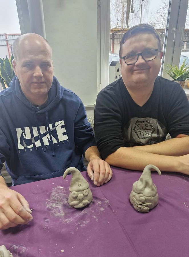 Po raz pierwszy nasi uczestnicy wzięli udział w warsztatach ceramicznych, które poprowadziła pani Dorota Wróbel. Pod jej okiem każdy z uczestników własnoręcznie wykonał z gliny wyjątkowego, bożonarodzeniowego skrzata.