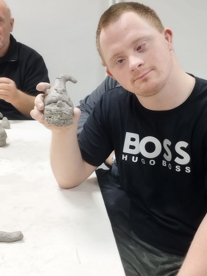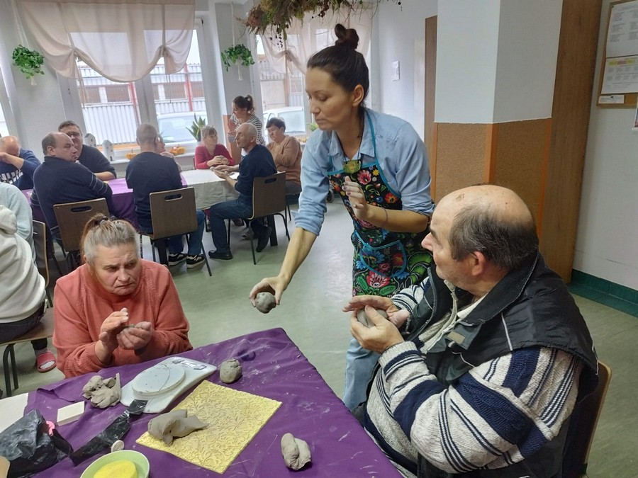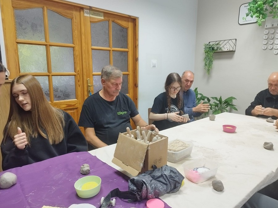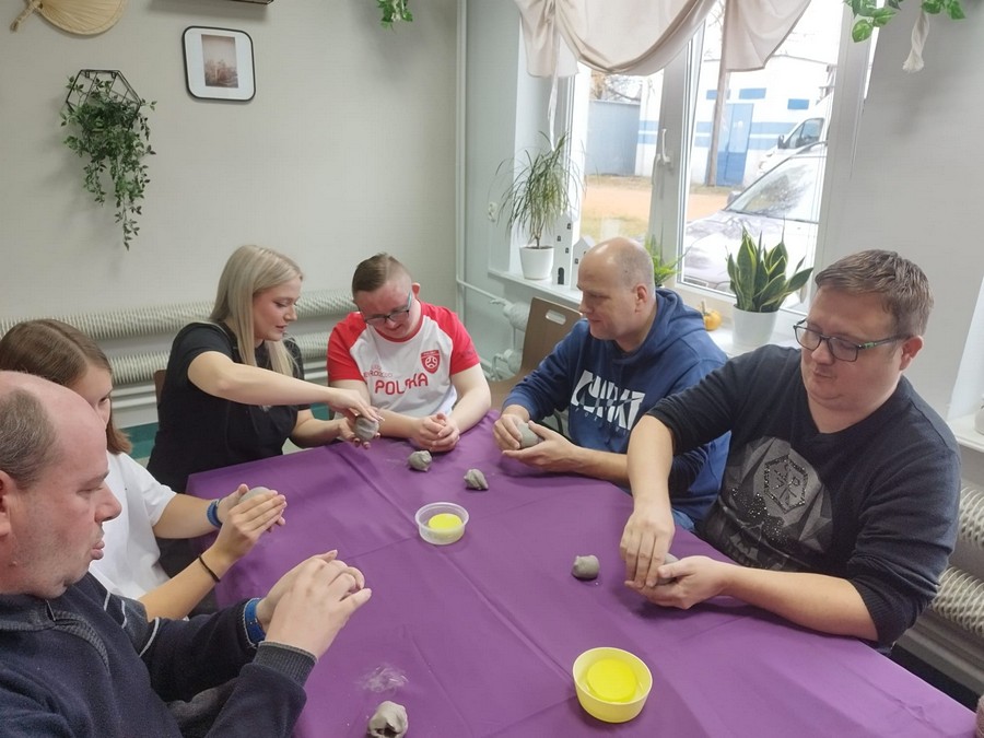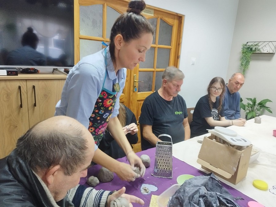 Po raz pierwszy nasi uczestnicy wzięli udział w warsztatach ceramicznych, które poprowadziła pani Dorota Wróbel. Pod jej okiem każdy z uczestników własnoręcznie wykonał z gliny wyjątkowego, bożonarodzeniowego skrzata.